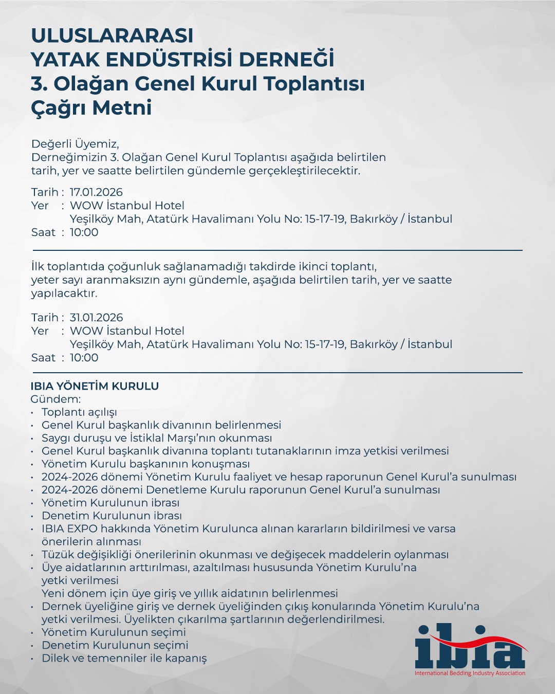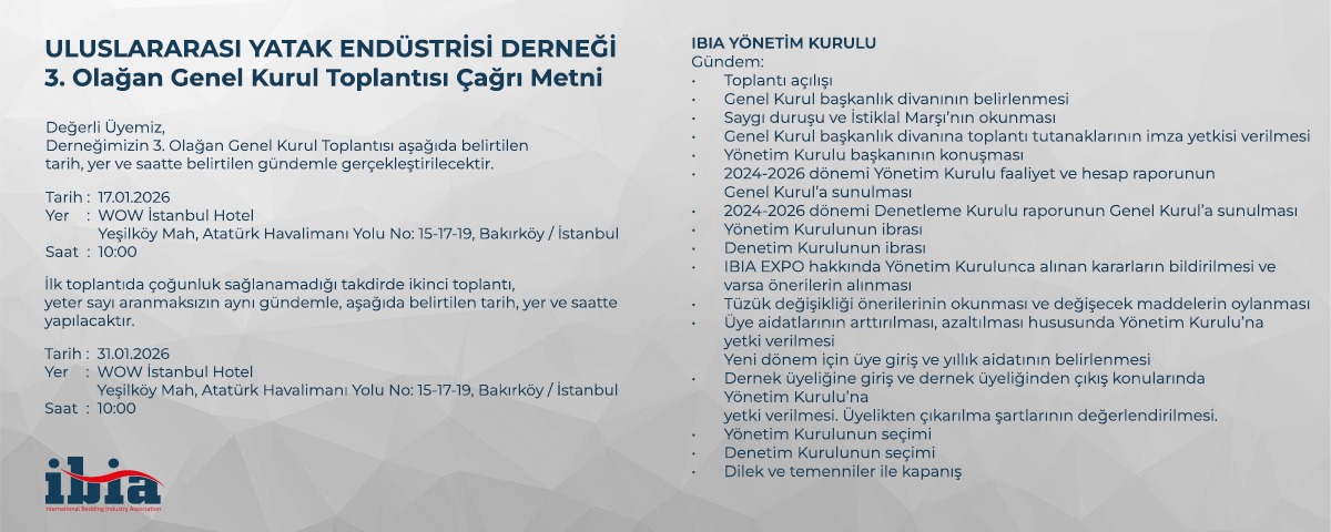 IBIA (International Bedding Industry Association) yatak üretim endüstrisini tek bir çatı altında toplamayı hedefleyen bir platformdur.